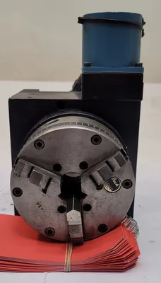 THE OGP MICROTHETA ROTARY, MODEL 52 5006, INCLUDES A 4-INCH, 3-JAW BUCK CHUCK. THE SYSTEM INCORPORATES A SUPERIOR ELECTRIC SLO-SYN/SYNCHRONOUS STEPPING RUN MOTOR, TYPE M061-FC02. THE MOTOR OFFERS A HOLD OF 53 OZ. IN. AND A STEP RESOLUTION OF 200 STEPS PER REVOLUTION. ELECTRICAL SPECIFICATIONS FOR THE MOTOR ARE 5.0 V/1.0 A – DC HZ. THE MOTOR SPECIFICATION IS BM101025.