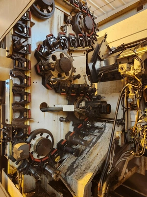 KEY SPECIFICATIONS INCLUDE A MAXIMUM SWING OVER BED OF 21.65 INCHES AND A MAXIMUM WORK LENGTH OF 39.37 INCHES. THE MAIN SPINDLE HAS A 3.15-INCH BORE, AN A2-8 SPINDLE NOSE, AND SPEEDS UP TO 5000 RPM, POWERED BY A 30/20 HP MOTOR. MILLING SPINDLE SPEEDS REACH 6000 RPM, SUPPORTED BY A 15/10/7.5 HP MOTOR. TRAVEL RANGES INCLUDE 18.70 INCHES (XA TURRET) AND 6.30 INCHES (XB TURRET) FOR THE X-AXIS, 40.06 INCHES (ZA TURRET) AND 45.47 INCHES (ZB TURRET) FOR THE Z-AXIS, AND A Y-AXIS RANGE OF 6.30 INCHES (+3.15 TO -3.15). THE MACHINE IS ALSO EQUIPPED WITH A TAILSTOCK (5 MT BORE, 3.54-INCH QUILL DIAMETER) AND A LIFT-UP CHIP CONVEYOR. OVERALL DIMENSIONS ARE 170" L X 100" W X 114" H, WITH AN APPROXIMATE WEIGHT OF 25,300 LBS.