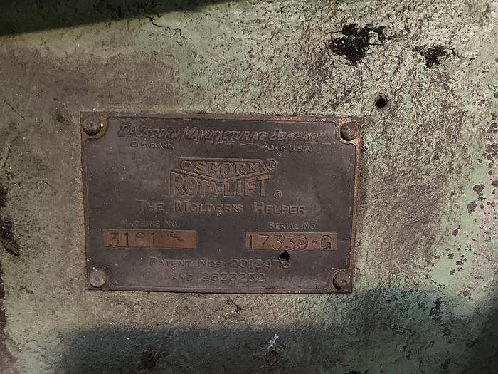 OSBORN 3161 ROTA-LIFT MOLDING MACHINE, TABLE 27.5X29IN, SQZ CYL 16IN, JOLT 2500LBS, WT 3550LBS