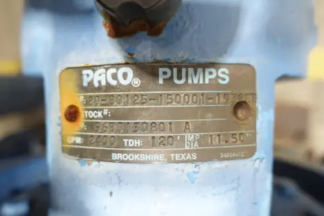 • PACO 29-80125-150001-1932EE CENTRIFUGAL PUMP, 2400 GPM, IMP. DIA 11.50", TDH: 120'