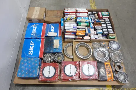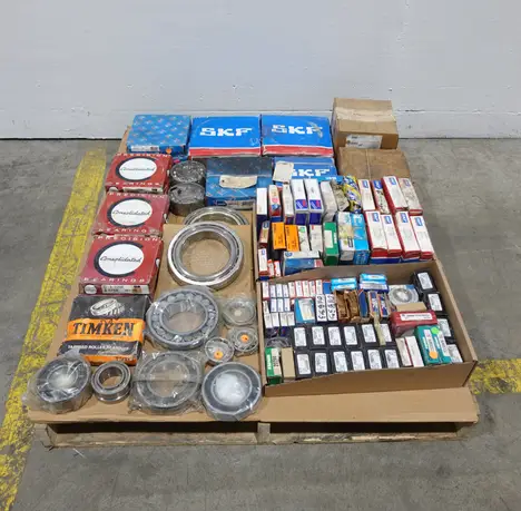 PALLET OF ASSORTED BEARINGS, SKF, CONSOLIDATED, TIMKEN, NTN, FAFNIR, NSK, KBC, SEAL MASTER