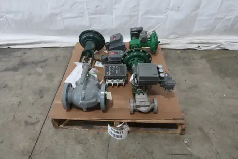 PALLET OF ASSORTED FISHER VALVES AND POSITIONERS