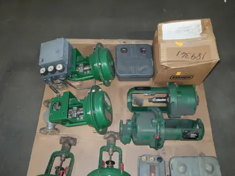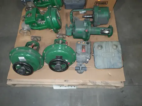 PALLET OF ASSORTED FISHER VALVES AND REPLACEMENT PARTS