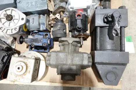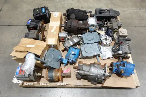 PALLET OF ASSORTED HYDRAULIC PUMPS, MOTORS AND CYLINDERS