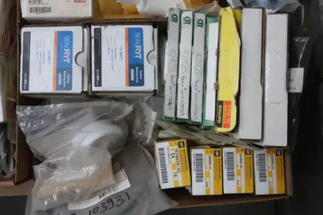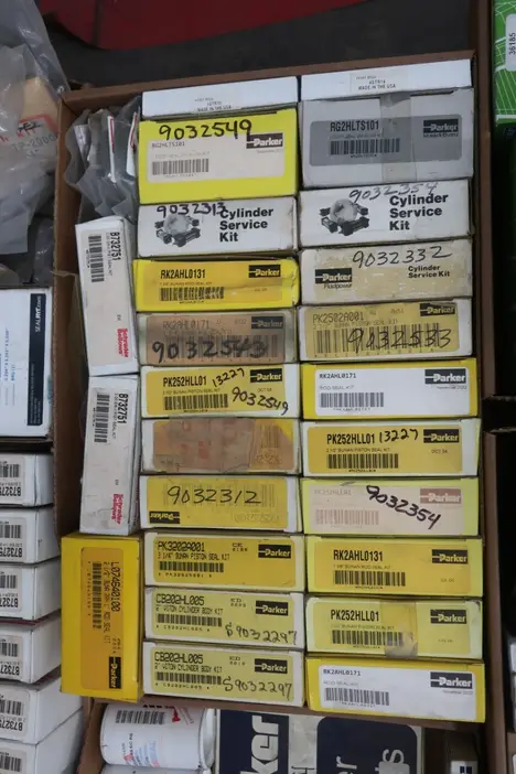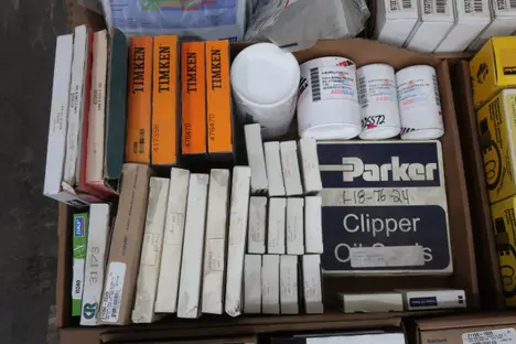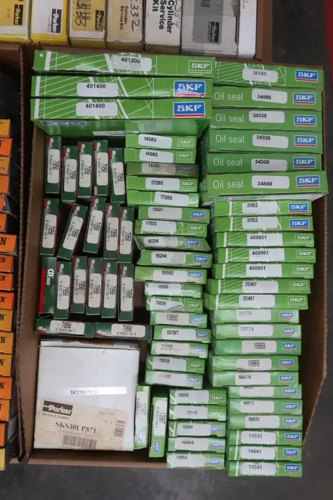PALLET OF ASSORTED OIL SEALS AND SEAL KITS, CR, SKF, CAT, TIMKEN, JM CLIPPER, PARKER, FALK, GARLOCK, SCHRADER BELLOWS