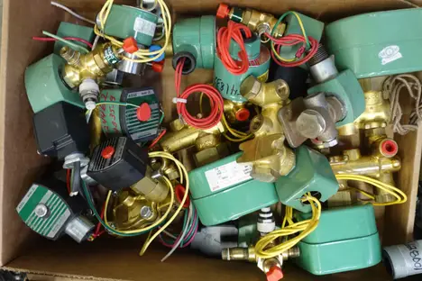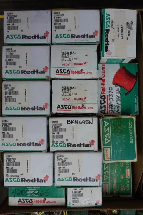 PALLET OF ASSORTED SOLENOID VALVES. ASCO,TOPRING,SMC,PARKER,PETER PAUL,NEW SKINNER,HONEYWELL,CONAIR,NORDSON,CKD,KIP,BURKERT,CLIFTRONICS,MAC,VERSA,NORDSON,ATKOMATIC,SPORLAN,CKD,SCA SCHUCKER,
