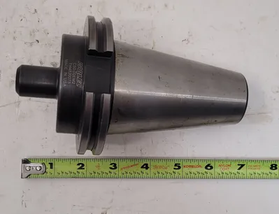 THIS IS A PARLEC C50-02EM2 END MILL HOLDER MANUFACTURED BY PARLEC. IT FEATURES A TAPER SHANK WITH A CAT50 TAPER SIZE. THE HOLDER HAS A 1/4 INCH HOLE DIAMETER, A 7/8 INCH NOSE DIAMETER, AND A PROJECTION OF 2.5000 DECIMAL INCHES. IT IS DESIGNED WITH COOLANT THROUGH CAPABILITY, SPECIFICALLY THROUGH-SPINDLE COOLANT TYPE, AND OFFERS A CLAMPING DEPTH OF 3.0000 DECIMAL INCHES. THE TOOL FEATURES A HIGH TIR (TOTAL INDICATED RUNOUT) OF 0.0002 DECIMAL INCHES AND INCLUDES A RETENTION KNOB THREAD SIZE OF 1-8.