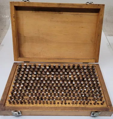 THIS ITEM IS A PHASE 2 MODEL P2 MINUS PLUG GAGE SET DESIGNED FOR PRECISE MEASUREMENT NEEDS. IT IS IDENTIFIED AS THE P2 – MINUS SET WITH AN OPERATIONAL MEASUREMENT RANGE OF .251-.500. THE SET INCLUDES AN ORIGINAL WOOD CASE FOR STORAGE AND ORGANIZATION.