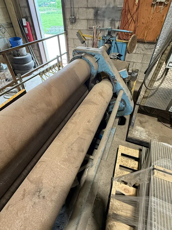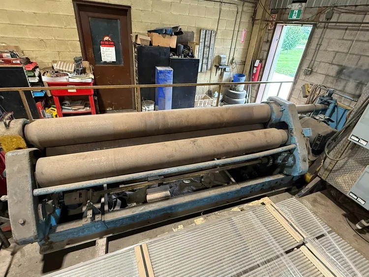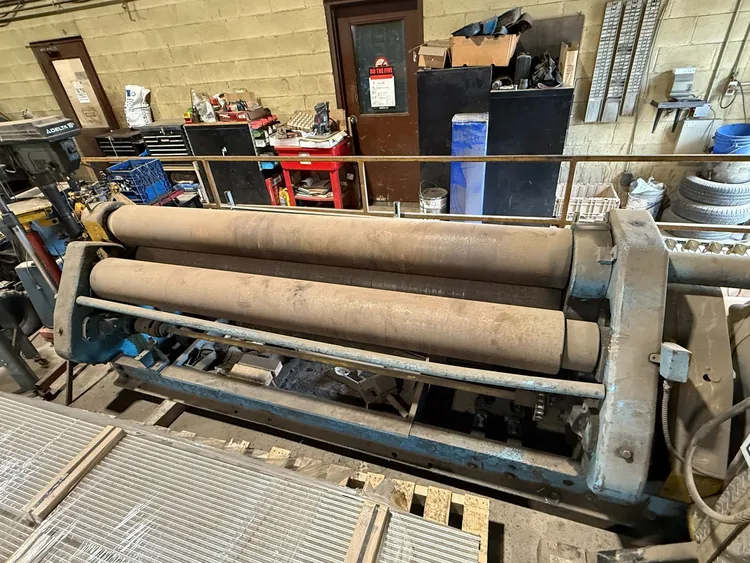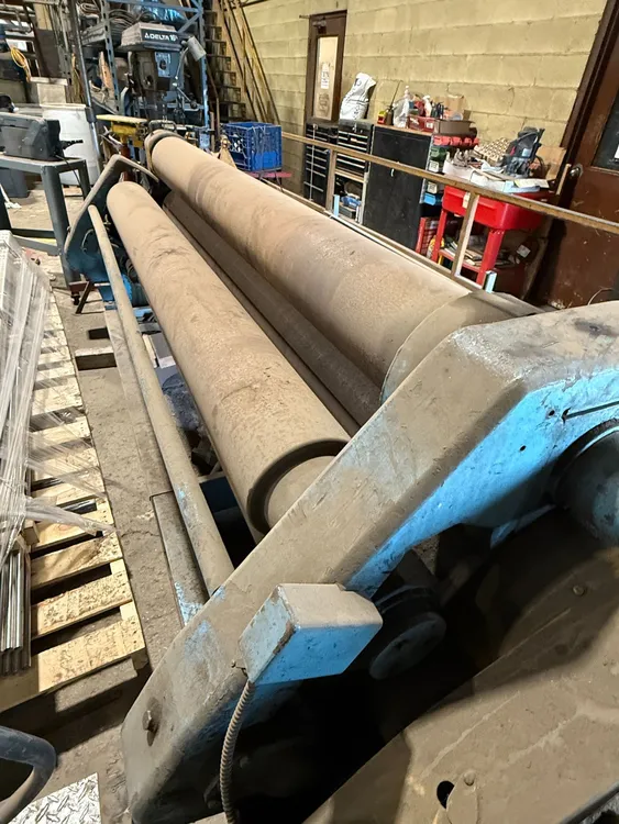 THIS PLATE BENDING ROLL IS AN 8-FOOT CAPACITY MACHINE, TYPICALLY POWERED BY A 15 HP MOTOR, SUITABLE FOR BENDING SHEET METAL PLATES. SIMILAR UNITS CAN HAVE CAPABILITIES SUCH AS HANDLING MILD STEEL UP TO 0.41 INCHES (10.4MM) IN THICKNESS OVER THE 8-FOOT WIDTH. ROLL DIAMETERS OFTEN RANGE AROUND 10 INCHES FOR THE TOP, BOTTOM, AND REAR ROLLS. OPERATIONAL SPECIFICATIONS FOR COMPARABLE 8-FOOT ROLLS INCLUDE SPEEDS AROUND 15 FPM OR 5 RPM. THESE MACHINES OFTEN FEATURE AN AIR DROP END FOR EASY MATERIAL REMOVAL AND MAY HAVE A WEIGHT OF APPROXIMATELY 20,100 LBS. THE DRIVE SYSTEM CAN BE EITHER HYDRAULIC OR CONVENTIONAL MECHANICAL, WITH ELECTRICAL REQUIREMENTS COMMONLY BEING 230-460V/3/60.