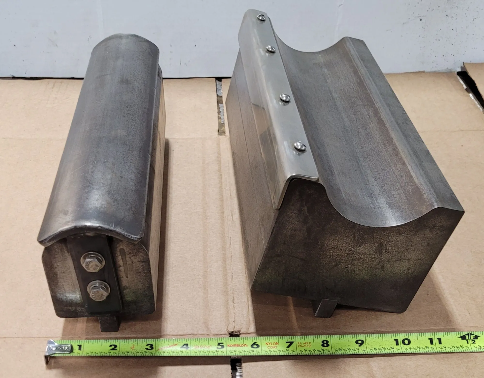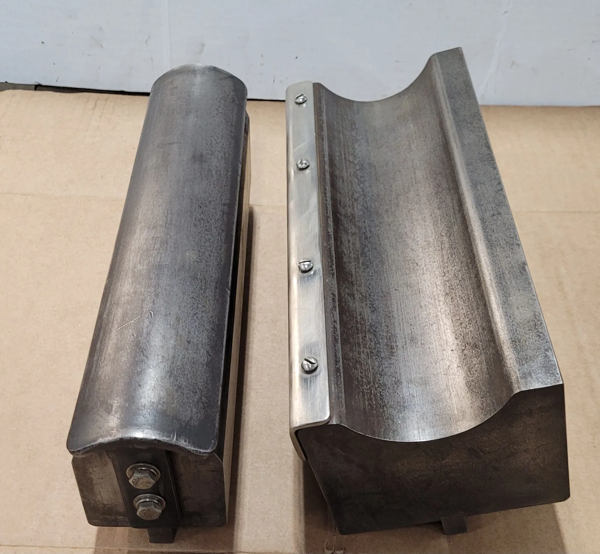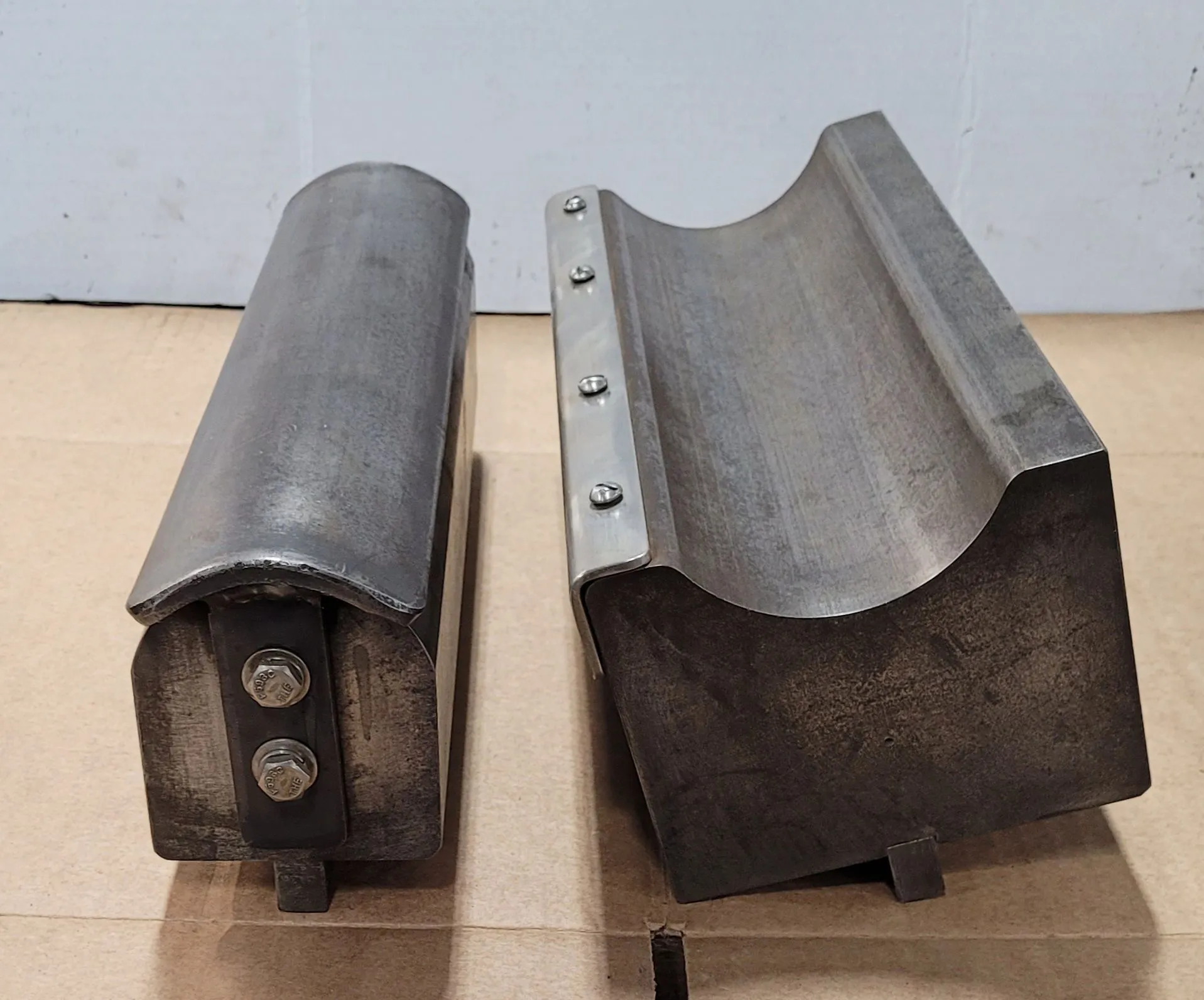 THIS PRESS BRAKE TOOLING SET CONSISTS OF A 1-3/4 INCH RADIUS PUNCH AND DIE. THE PUNCH FEATURES AN OVERALL LENGTH OF 13 INCHES, WHILE THE DIE HAS AN OVERALL LENGTH OF 12 INCHES. THE COMPONENTS ARE DESIGNED AS A TWO-PIECE SET SPECIFICALLY FOR RADIUS FORMING APPLICATIONS ON A PRESS BRAKE.