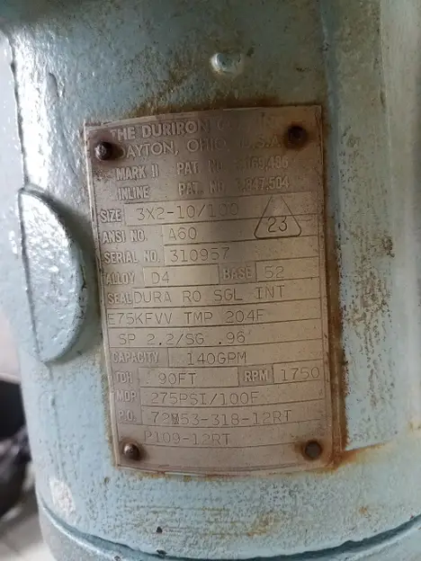 Pump and motor test station with Duriron 3x2-10 stainless pump and Reliance 5hp 460V-AC motor