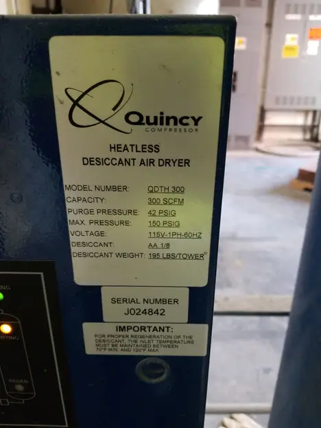 Quincy QDTH 300 Desiccant Air Dryer 300SCFM 150PSI 115V-AC 1PH