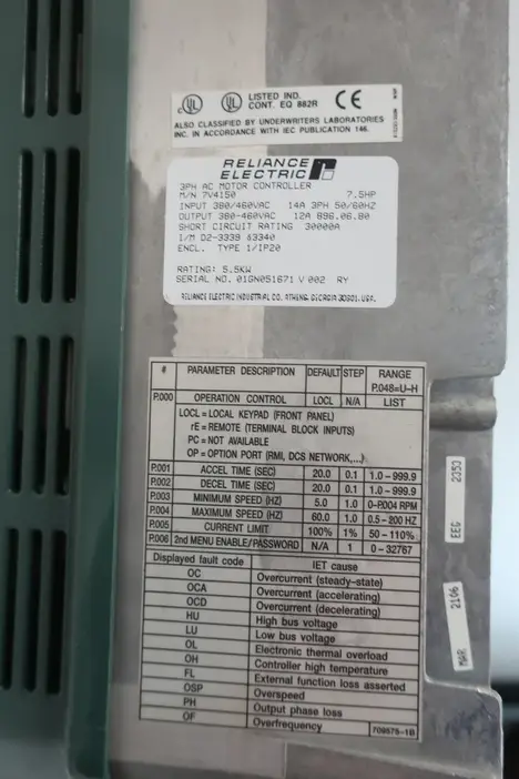 RELIANCE 7V4150 GV3000 AC VFD DRIVE 380/460V-AC 380-460V-AC 7.5HP