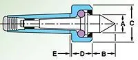 THE RITEN 12102 LIVE CENTER IS CONSTRUCTED FROM HARDENED TOOL STEEL, ENSURING PRECISION WITH AN ACCURACY OF ± .00004. IT FEATURES A MORSE TAPER, SIZE 2, AND UTILIZES A STANDARD POINT STYLE. THE UNIT IS RATED FOR A MAXIMUM RPM RANGE OF 0 TO 1000 AND CAN HANDLE A MAXIMUM WORK PIECE WEIGHT OF 0 TO 400 LBS. DIMENSIONAL SPECIFICATIONS INCLUDE AN A - POINT DIAMETER OF 0.730 INCH, B - POINT LENGTH OF 0.870 INCH, C - HEAD DIAMETER OF 1.250 INCH, D - HEAD LENGTH OF 0.750 INCH, AND E - GAGE LINE TO BACK OF HEAD OF 0.184 INCH. THE SERIES IS CLASSIFIED AS SUPER ACCURATE, AND OTHER AVAILABLE POINTS INCLUDE CARBIDE STANDARD.