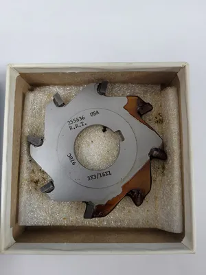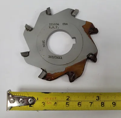 THE ROCK RIVER TOOL MODEL 255836 IS A CARBIDE-TIPPED SAW BLADE WITH AN OUTSIDE DIAMETER (O.D.) OF 3 INCHES. IT FEATURES 8 TEETH AND HAS A HOLE DIAMETER OF 1 INCH WITH A 1/4-INCH KEYWAY. THIS ITEM WEIGHS 1 POUND.