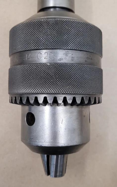 THIS IS A ROHM KEYED BALL BEARING DRILL CHUCK, CATEGORIZED UNDER TOOLING & ACCESSORIES. THE CHUCK IS DESIGNATED BY THE PART NUMBER 215002 AND IS ENGINEERED WITH A 4JT CHUCK MOUNT. IT UTILIZES A JACOBS ARBOR CHUCK, SPECIFICALLY FEATURING THE 4MT/4JT CONFIGURATION. THE OPERATIONAL CAPACITY OF THIS CHUCK RANGES FROM 3/16 TO 3/4 INCHES, OR 1.5 TO 20 MILLIMETERS. IT INCLUDES THE REQUIRED K4 KEY.