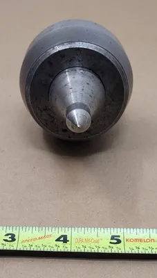 THE ROYAL 10214 SPINDLE TYPE LIVE CENTER, 4MT SIZE, IS ENGINEERED FOR CNC OPERATIONS, DELIVERING A MAXIMUM SUGGESTED RPM OF 4,500 AND A THRUST LOAD CAPACITY OF 4,050 LBS. THIS TOOL FEATURES A HIGH SPEED STEEL TIP WITH A CNC POINT STYLE AND MAINTAINS HIGH PRECISION WITH AN ACCURACY OF +/-0.00005". KEY DIMENSIONS INCLUDE A POINT DIAMETER OF 1.25 INCHES, A POINT LENGTH OF 2.18 INCHES, A HEAD DIAMETER OF 2.68 INCHES, AND A HEAD LENGTH OF 1.98 INCHES. IT HAS AN OVERALL LENGTH OF APPROXIMATELY 9 INCHES AND AN INCLUDED ANGLE OF 60°.