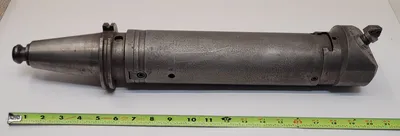THIS IS A SANDVIK COROMANT 3 PIECE BORING SET FEATURING A CAT 50 HOLDER. THE SET INCLUDES A SANDVIK A390.45-50 COMPONENT, A VARILOCK TO VARI SET BORING BAR (PART NUMBER 391 36 50 63 270), AND A VARILOCK MICROBORE HEAD (PART NUMBER 448S-808056-16). THE MICROBORE HEAD SUPPORTS A BORING RANGE FROM 80MM TO 136MM. THE ENTIRE ASSEMBLY, WHEN CONNECTED, HAS AN APPROXIMATE TOTAL LENGTH OF 21 INCHES. THE SET IS DESIGNED FOR PRECISION MACHINING NEEDS.