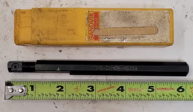 THIS SANDVIK COROMANT BORING BAR, MODEL MS-CLHOR-46254, IS DESIGNED WITH A RIGHT-HAND ORIENTATION. IT FEATURES A 1/2 INCH SHANK DIAMETER, AN OVERALL LENGTH OF 6 INCHES, AND A SHANK LENGTH OF 5 INCHES.