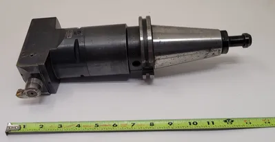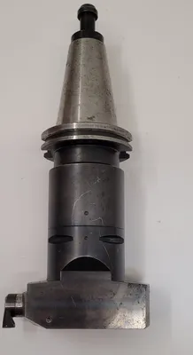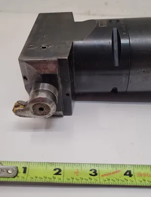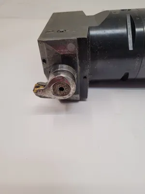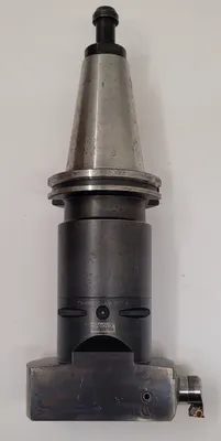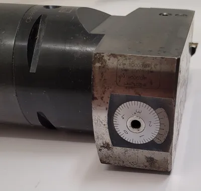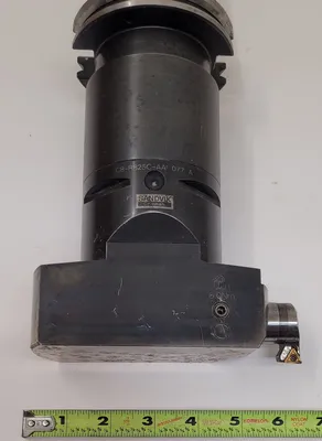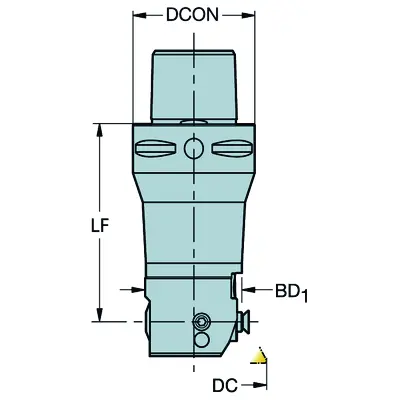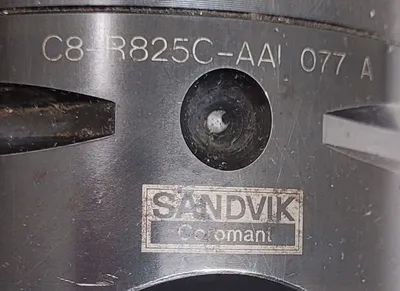 THE SANDVIK COROMANT COROBORE C8-R825C-AAI 077 A BORING HEAD IS DESIGNED FOR TOOLING AND BORING APPLICATIONS, FEATURING A CAPTO 8 CONNECTION AND IS PAIRED WITH A BIG DAISHOWA CAT50 HOLDER. THE OVERALL LENGTH WITH THE CAT 50 HOLDER IS 12 INCHES WITHOUT A BUTTON AND 14 INCHES WITH A BUTTON. SPECIFICATIONS FOR THE COROBORE ONLY INCLUDE A CONNECTION DIAMETER MACHINE SIDE (DCONMS) OF 3.1496 INCHES, A FUNCTIONAL LENGTH (LF_1) OF 3.0315 INCHES, A FUNCTIONAL WIDTH (WF_1) OF 2.2835 INCHES, A BODY LENGTH (LB_1) OF 3.7795 INCHES, AND A BODY DIAMETER (BD_1) OF 5.1181 INCHES. THE TOTAL LENGTH (OAL) OF THE BORING HEAD IS 5.6693 INCHES. THE MINIMUM MILLING DIAMETER (DCN) IS 5.3543 INCHES, AND THE MAXIMUM CUTTING DIAMETER (DCX) IS 6.5748 INCHES.