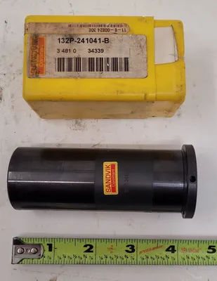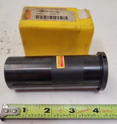 THIS ITEM IS A SANDVIK 132P-241041-B CYLINDRICAL SLEEVE MANUFACTURED BY SANDVIK COROMANT. THE SLEEVE FEATURES EASY-FIX POSITIONING FOR TOOLING APPLICATIONS. TECHNICAL SPECIFICATIONS INCLUDE A BODY DIAMETER OF 1.5 INCHES, AN OVERALL LENGTH (OAL) OF 4.13 INCHES, AND A BORE DIAMETER OF 0.63 INCHES.