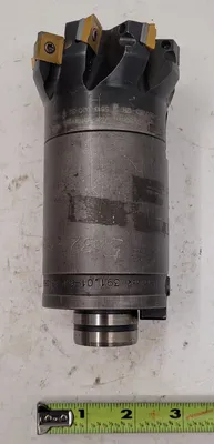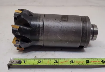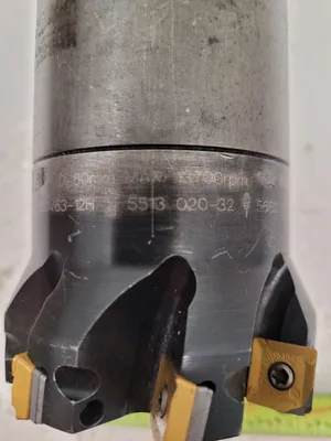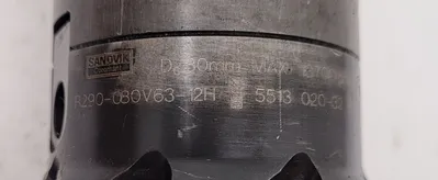THE SANDVIK COROMANT R290-080V63-12H IS AN 80MM FACE MILL. THIS ITEM FEATURES AN 80MM MAXIMUM CUT CAPABILITY AND A MAXIMUM ROTATIONAL SPEED OF 13700 RPM. IT INCLUDES A SANDVIK VARILOCK EXTENSION, WHICH CONTRIBUTES TO AN OVERALL LENGTH (OAL) OF 5.8 INCHES. KEY DIMENSIONS INCLUDE A SHANK DIAMETER OF 2.46 INCHES, A HUB DIAMETER OF 1.25 INCHES, AND A BORE DIAMETER OF 21MM. THE FACE MILL COMES ATTACHED WITH THE SANDVIK VARILOCK EXTENSION, PART NUMBER 391.01-63 63 080.