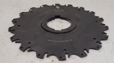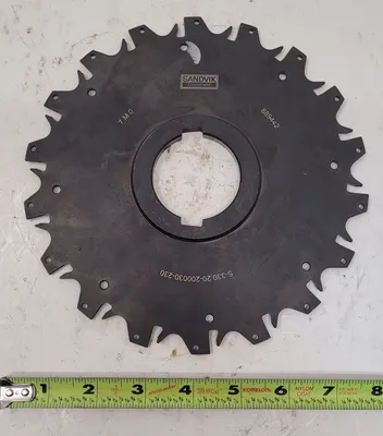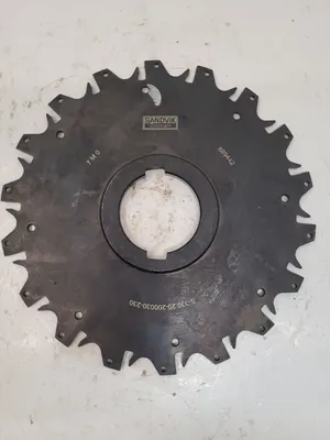 THE ITEM IS A SANDVIK COROMANT T-MAX SLITTING Q-CUTTER, MODEL S-330.20-200030-230, WITH A LISTED PART NUMBER OF S-330.20-160030-230. THIS SLITTING CUTTER HAS A NEUTRAL DESIGN AND FEATURES AN OVERALL DIAMETER OF 7.75 INCHES, A HUB DIAMETER OF 2.9 INCHES, AN ARBOR DIAMETER OF 2 INCHES, AND A THICKNESS OF 0.08 INCHES.