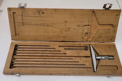 THIS ITEM IS A SCHERR-TUMICO DEPTH GAUGE MICROMETER. IT HAS A MEASURING RANGE OF 0-10" AND IS USED WITH A 5" BASE. THE GAUGE IS CATEGORIZED AS A DEPTH GAUGE MICROMETER.
