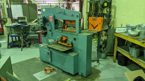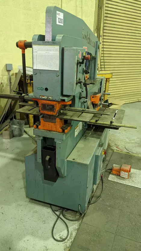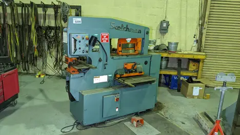 SCOTCHMAN IRON WORKER, 460V, 5 HP, SERIAL # 21528M0406, INCLUDES TOOL CART AND MISCELLANEOUS TOOLS