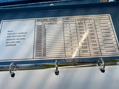 This Adaptor Tool Set is for connector MIL-DTL-38999 Series 3 plugs. There are 18 adaptor tools in this set and it covers shell sizes 9 through 25