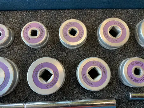 This Adaptor Tool Set is for connector MIL-DTL-38999 Series 3 plugs. There are 18 adaptor tools in this set and it covers shell sizes 9 through 25