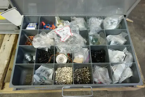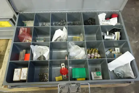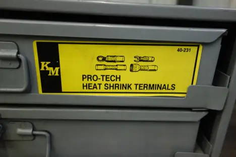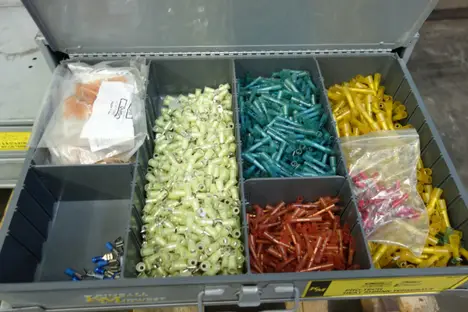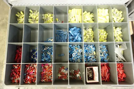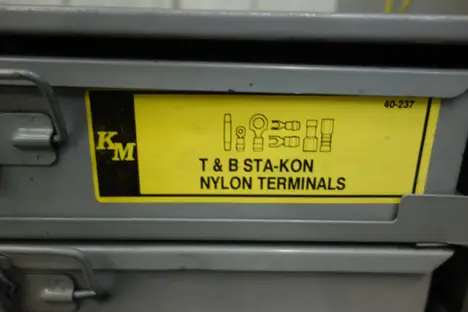 SET OF KM ORGANIZER BINS WITH ASSORTED TERMINALS AND CONNECTORS