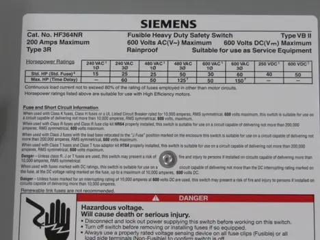 This lot contains (1) Siemens HF364NR heavy duty safety switch.