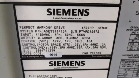SIEMENS GEN3E 4500 HP MEDIUM VOLTAGE DRIVE VFD 3 DOOR CONTROL CABINET