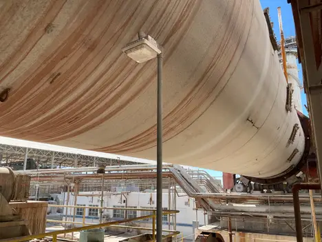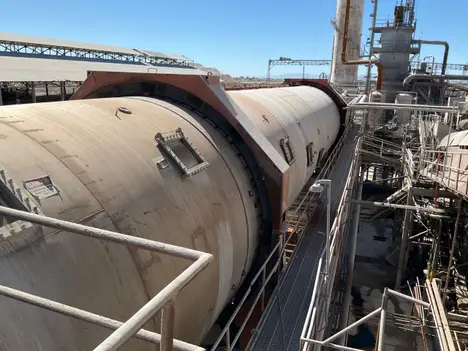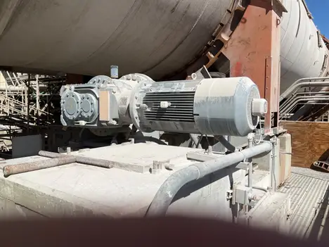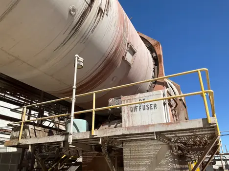 THE SILVER RT4 IS A HIGH-CAPACITY, CONTINUOUS COUNTER-CURRENT DIFFUSER DESIGNED FOR THE EXTRACTION OF SUCROSE FROM SUGAR BEET COSSETTES ON AN INDUSTRIAL SCALE. RECENTLY UPGRADED TO A FULL STAINLESS STEEL SHELL, FEATURING A VESSEL WITH A 5600 MM INTERNAL DIAMETER, IT IS CAPABLE OF PROCESSING AROUND 5000 METRIC TONS OF BEETS PER DAY. THE EXTRACTION PROCESS IS DRIVEN BY TWO MAIN 100 HP MOTORS POWERING A ROTATING BED, ALLOWING BEETS TO MOVE STEADILY THROUGH THE VESSEL WHILE PROCESS JUICE IS CIRCULATED IN THE OPPOSITE DIRECTION TO MAXIMIZE SUGAR YIELD. A VARIABLE-SPEED DISCHARGE CONVEYOR, OPERATED BY A 40 HP HYDRAULIC MOTOR AND A 50 HP HYDRAULIC POWER UNIT, ENABLES PRECISE CONTROL OF THE MATERIAL’S RESIDENCE TIME AND THE DIFFUSER’S DISCHARGE RATE. TO MANAGE FOAM AND AIR ENTRAINMENT WITHIN THE PROCESS, THREE DEDICATED FOAM BREAKER MOTORS, EACH RATED AT 7.5 HP, ARE INSTALLED AT STRATEGIC LOCATIONS ON THE DIFFUSER.