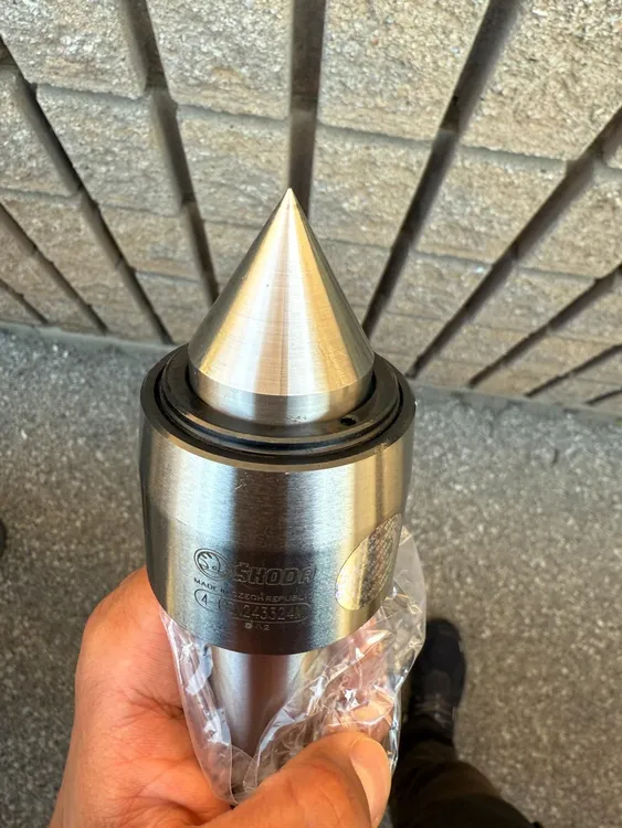 THE MT4 SKODA 4-CSN243324M HEAVY DUTY LIVE CENTRE IS A ROBUST MACHINING ACCESSORY MANUFACTURED BY SKODA. IT FEATURES A MORSE TAPER #4 (MT4) SHANK AND IS DESIGNED WITH A 60° POINT ANGLE. THE LIVE CENTER HAS A POINT DIAMETER OF APPROXIMATELY 1.5 INCHES (38 MM) AND A BODY (HEAD) DIAMETER OF ABOUT 2.2 INCHES (55 MM). THE OVERALL LENGTH MEASURES APPROXIMATELY 7.5 INCHES (190 MM). THIS HEAVY-DUTY MODEL OFFERS A MAXIMUM WORKPIECE LOAD CAPACITY OF APPROXIMATELY 2,860 POUNDS (1,300 KG) AND CAN HANDLE A MAXIMUM RPM OF UP TO 6,000. THE UNIT WEIGHS 5 POUNDS (2 KG).
