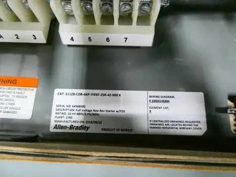 SKU 1006001 - ALLEN BRADLEY 2112B-CDB-6XP-7FEEF-25R-42-900X MCC STARTER BUCKET 15HP
