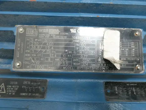 SKU 1028571 - WEG 01518NT3FVD254TC-W22 INVERTER MOTOR 254/256TC 3PH 15HP 1775RPM 230/460V-AC