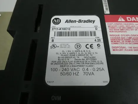 SKU 1034147 - ALLEN BRADLEY 2711-K10C12 PANELVIEW 1000 OPERATOR INTERFACE PANEL SER D
