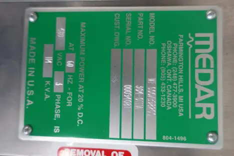 SKU 1065226 - MEDWELD MF 600/B98200 3000S MFDC WELDING CONTROL CABINET