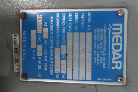 MEDWELD MF 600/B98200 3000S MFDC WELDING CONTROL CABINET, 480VAC, 3 PH, 114 KVA, 60 HZ