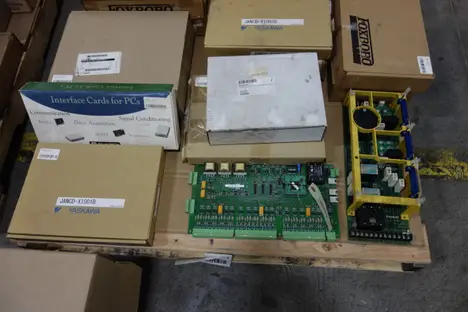 3 PALLETS OF ASSORTED PCB CIRCUIT BOARDS - L-3 MAPPS MA65134022268, FOXBORO CS-N/SRC N-2AI-I2V CURRENT TO VOLTAGE CONVERTER,YASKAWA JANCD-XI001B REV C01,APCC 640-4113B THORS HAMMER BATTERY BACKPLANE REV 3, STC 5378-1 RELAY TERMINAL, GENERAL ELECTRIC GE 203B8324G1 RSI COUNTER DRIVER