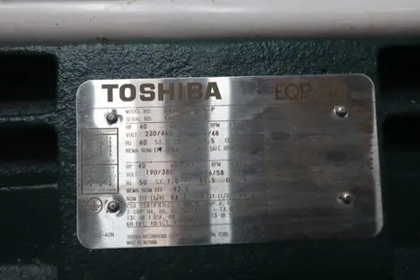 TOSHIBA AC ELECTRIC MOTOR - MODEL 0404SDSR41A-P EQP GLOBAL SD, 324T, 3PH, 40HP, 1775RPM,2-1/8IN, 230/460V-AC