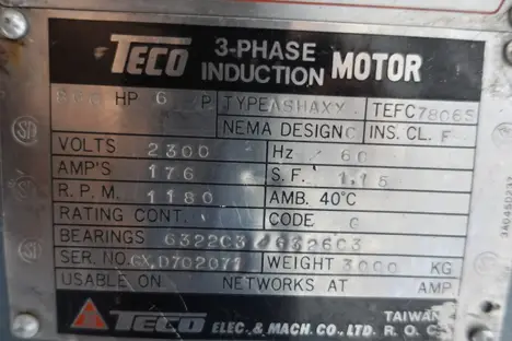 SKU 1722622 - TECO WESTINGHOUSE 800 HP TECO INDUCTION MOTOR
