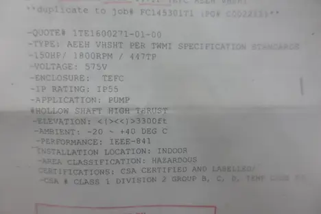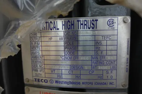 SKU 1722644 - TECO WESTINGHOUSE 6880-L-T VERTICAL HIGH THRUST AC MOTOR