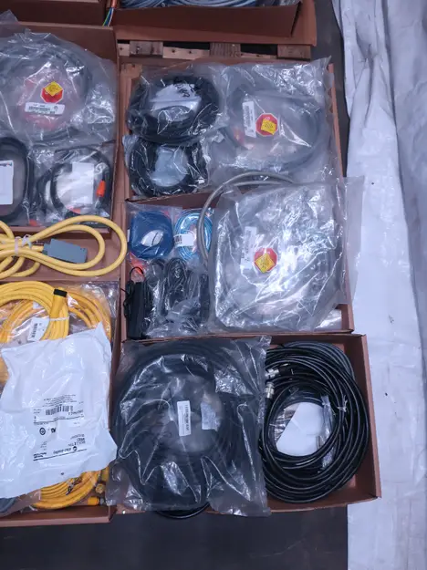 2 PALLETS OF ASSORTED CORDSETS, BRAD CONNECTIVITY, EATON, LUMBERGAUTOMATION, AVENTICS, AB, TRUCK, NORDSON, OMRON, MURR