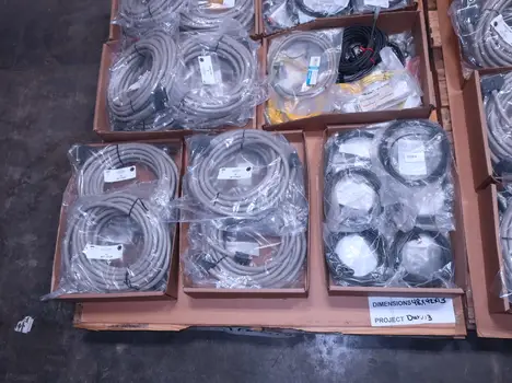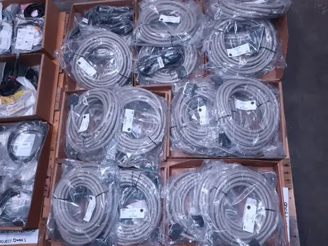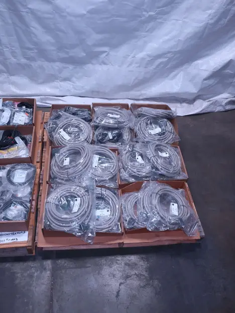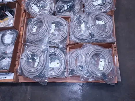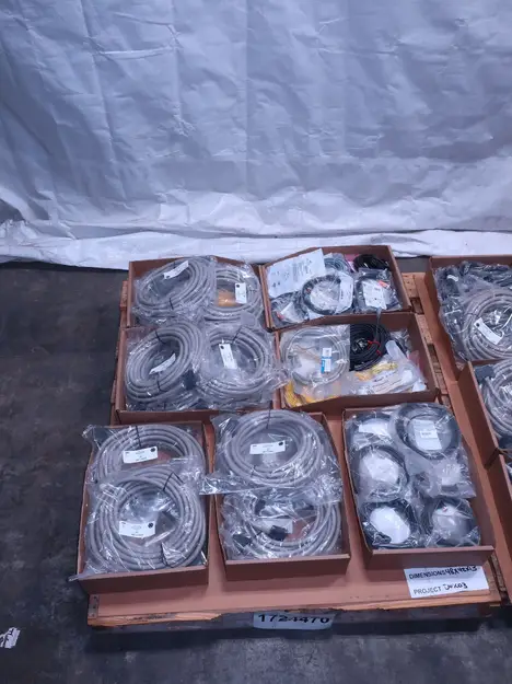 2 PALLETS OF ASSORTED CORDSETS, BLACK BOX, OMRON, PEPPERL FUCHS, LUMBERGAUTOMATION, IFM, MICRO DETECTORS, BALLUFF, BANNER, AB