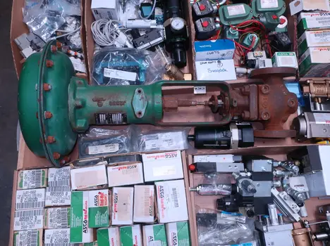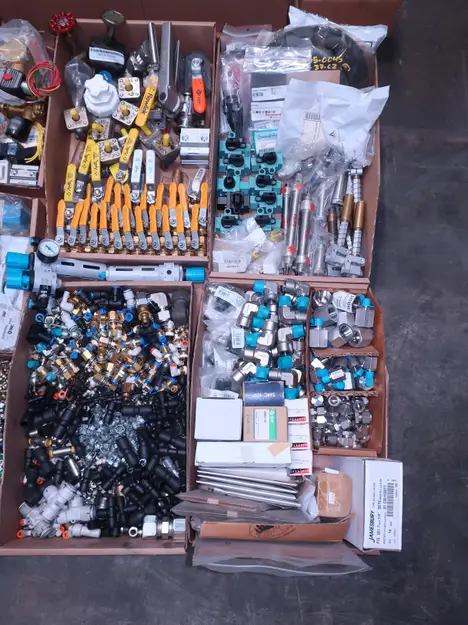 2 PALLETS OF ASSORTED VALVES AND VALVE PARTS, BALL VALVES, FITTINGS, SOLENOID VALVE, FISHER, ASCO, FESTO, SMC, SWAGELOK, MAC, FLOWSERVE, RONCO, BIMBA, APOLLO, FLOWTEK, HONEYWELL, PARKER, JAMESBURY, NUMATICS