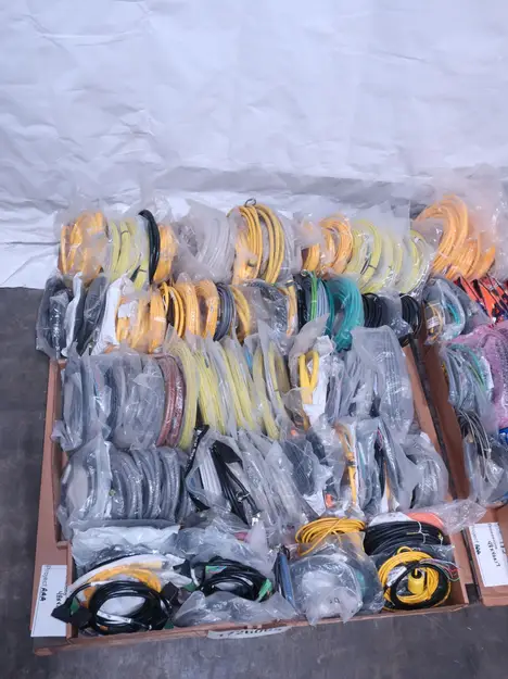 2 PALLETS OF ASSORTED CORDSET CABLES, STI, LEONI, BLACK BOX, IFM ELECTRONIC, ALLEN BRADLEY, TURCK, INTERFACE, AUTOMATION DIRECT, BALLUFF, SIEMENS, ZIP LINK, TECHNA, FUJI ELECTRIC, BANNER, FIBER OPTIC, MURR ELEKTRONIK, EATON