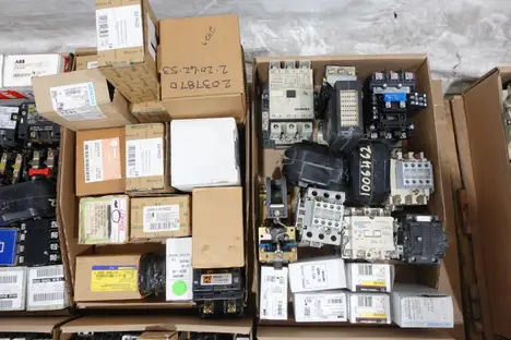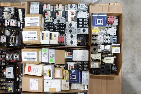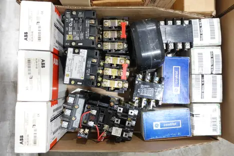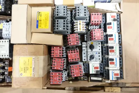 2 PALLETS OF ASSORTED MOTOR STARTERS, CONTACTORS AND OVERLOAD RELAYS, GE, FUJI, SIEMENS, SCHNEIDER, EATON, CUTLER HAMMER, AB, MISUMI, ABB, WESTINGHOUSE, TELEMECANIQUE
